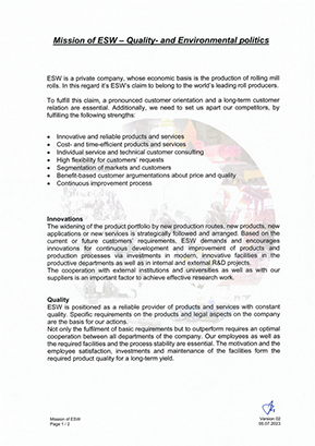 ESW is nowadays one of the world’s leading producers of rolls for shaping steel. The origins go back to the year 1770. The company has been owned by the foundation of the Weinberger Family for 125 years.