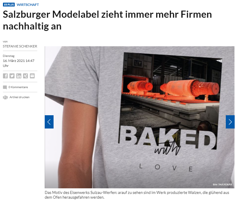 Einer der Kunden ist das Eisenwerk Sulzau-Werfen. Dort gibt es im Mitte 2020 eröffneten Mitarbeitershop nicht nur die 250-Jahre-Firmenchronik, Schlüsselanhänger und Regenschirme im klassisch-dezenten Design des Unternehmens, sondern auch die optisch weniger zurückhaltenden Erdbär-Shirts. „Wir wollten mutiger werden“, sagt Vorstandsvorsitzender Georg Hemetsberger. Darauf zu sehen sind im Werk produzierte Walzen, die glühend aus dem Ofen herausgefahren werden. „Baked with Love“ steht darunter – eine Anspielung auf den Herstellungsprozess. Die Shirts sind einer von sieben Bausteinen eines vor Corona konzipierten Personalentwicklungsprogrammes. „Die T-Shirts sind aus Holzfasern gemacht – Nachhaltigkeit und regionales Denken verbindet uns mit Erdbär“, sagt Hemetsberger.